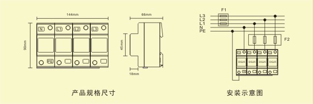 ◆ 安装在三相交流电源线路上,用于电源线路第一级防雷及抗浪涌保护;