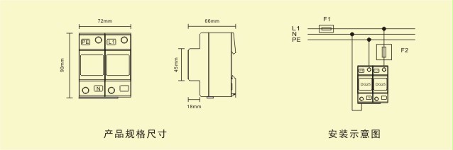 ◆ 安装在单相交流电源线路上,用于电源线路第一级防雷及抗浪涌保护;