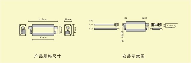 ◆ 安装在定点摄像枪端,用于电源、信号线路防雷及抗浪涌保护,满足定点摄像枪防雷保护及电气特性要求;