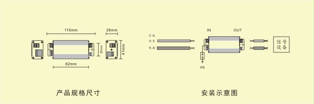 ◆ D类电源电涌保护器与二芯信号电涌保护器的组合产品,安装在设备端,用于电源、信号线路防雷及抗浪涌保护,满足常用信号设备防雷保护及电气特性要求;