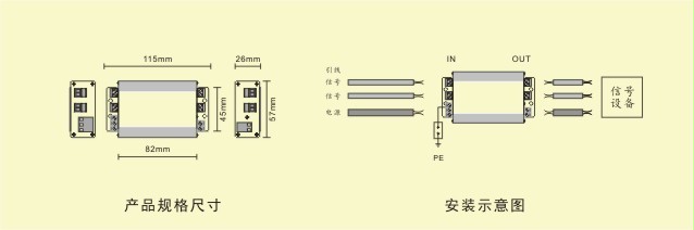 ◆ D类电源电涌保护器与两组二芯信号电涌保护器的组合产品,安装在设备端,用于电源、信号线路防雷及抗浪涌保护,满足常用信号设备防雷保护及电气特性要求;